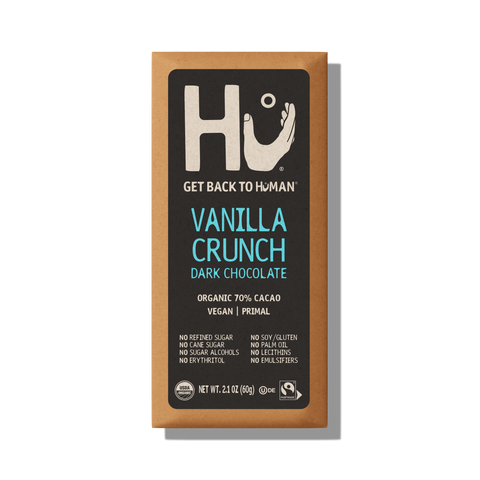 - Roughly chop the Hu Vanilla Crunch Bars and press chunks into the pumpkin dough.